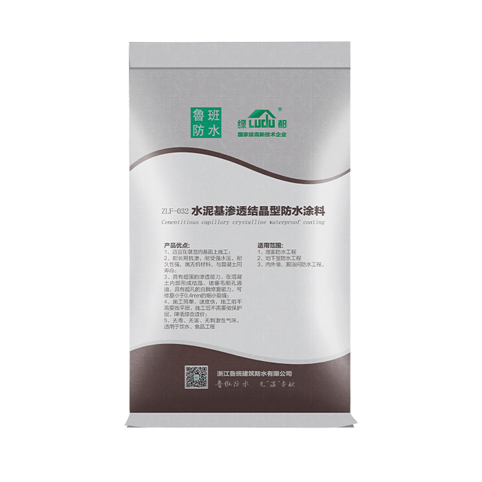 水泥基滲透結(jié)晶型防水涂料是一種含有活性化合物的水泥基粉狀防水涂料,其活性化合物在與水作用后,通過載體向混凝土內(nèi)部滲透,在混凝土中形成不溶于水的結(jié)晶體,填塞毛細(xì)孔道和裂縫,從而使混凝土致密、起到防水效果。